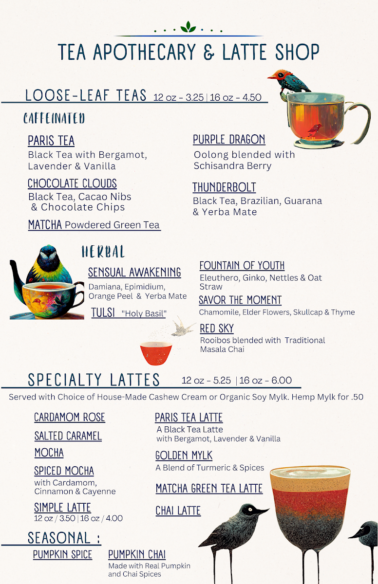 *Black Tea Concentrate with *Bergamot, *Lavender, *Vanilla and Milk of Choice *Denotes Organic