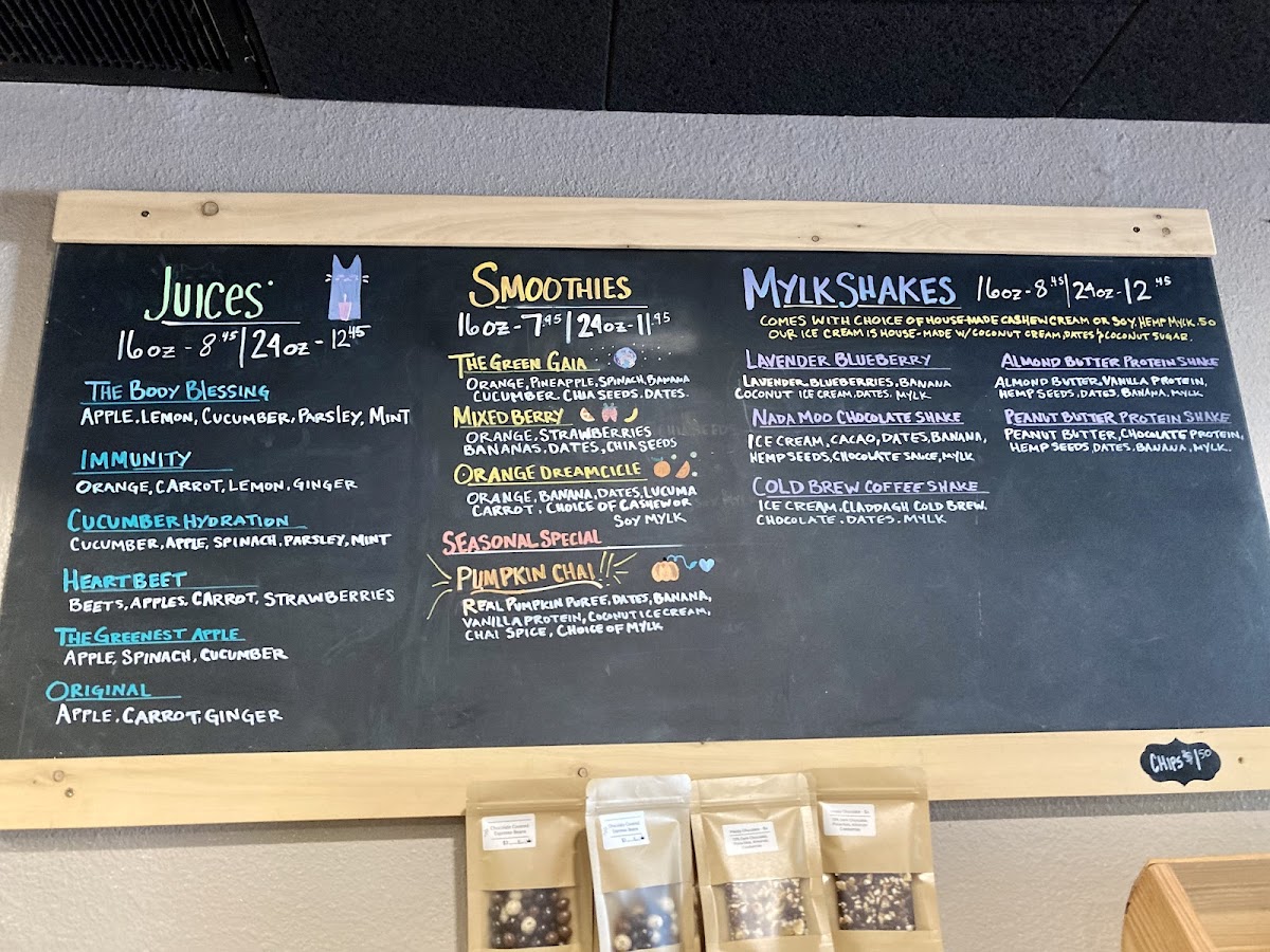 Dark Cocoa, *Cardamom, *Cinnamon, *Cayenne, *Dates, *House-Made Cold-Brew Coffee, *Banana, Dark Choc Espresso Beans, *House-Made Vegan Coconut Ice Cream & Milk of Choice