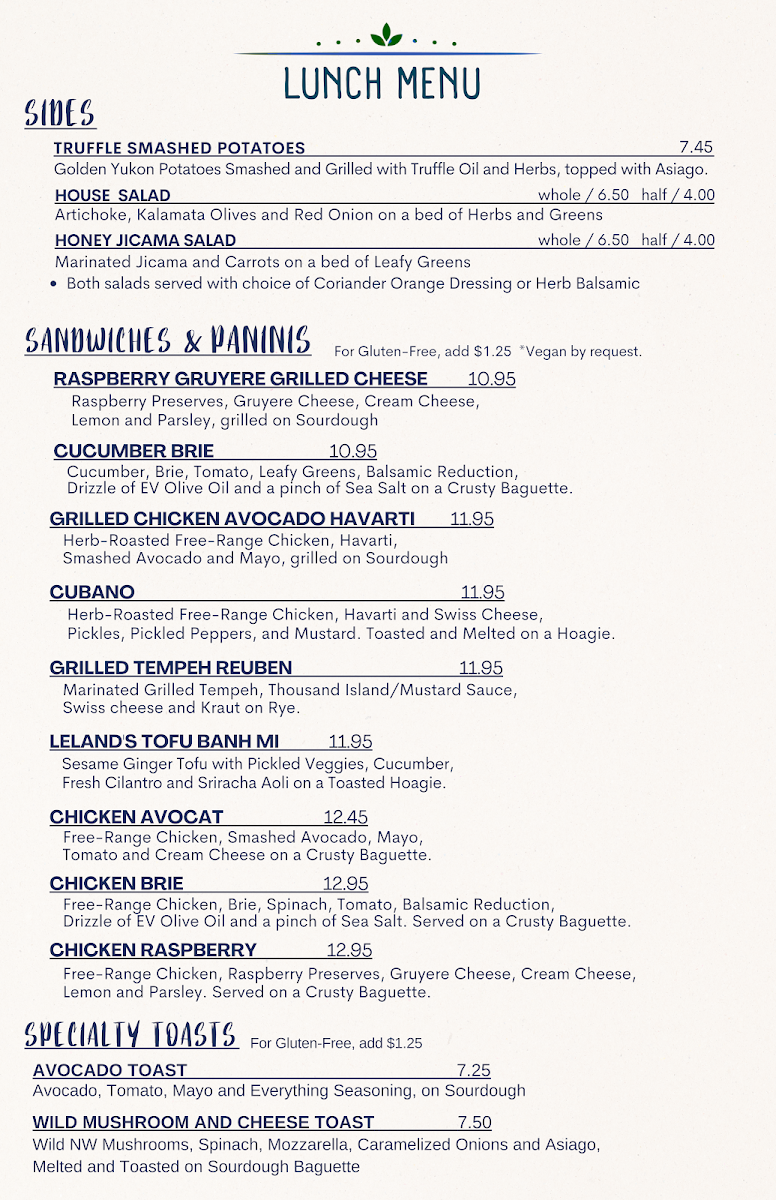 The ambiance enhances the experience, with a comfortable vibe perfect for a quick meal or a relaxing gathering. Guests appreciate the attentive service and the lovely outdoor seating, ideal for enjoying a delicious Tomato Basil Soup or hearty sandwiches like the Chicken and Brie Sammie. Come for the food, stay for the friendly community atmosphere that nourishes both body and soul.