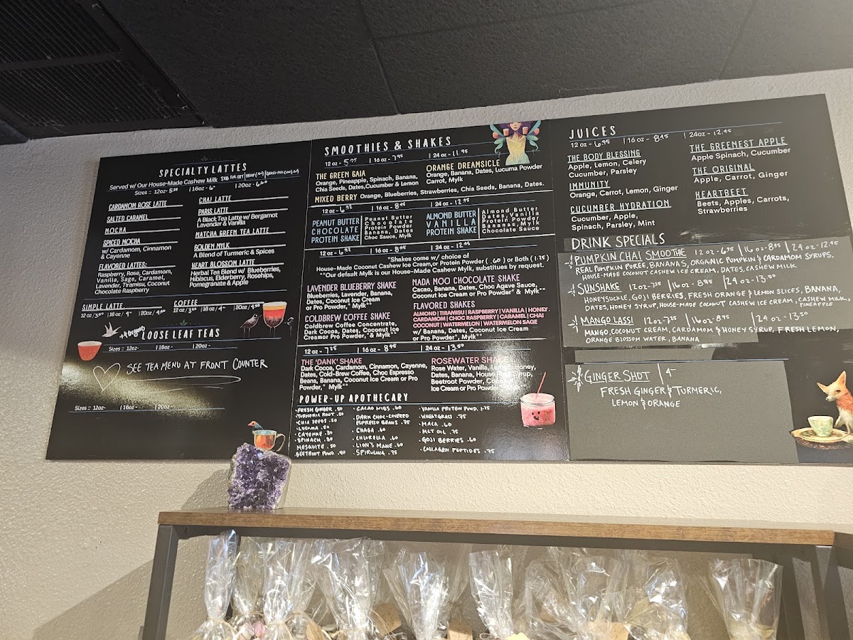 *Rose Water, Vanilla, *Lemon, *Dates, *Banana, *House Rose Syrup, *House Honey Syrup, *Rose Petals, *Beet, *House-Made Vegan Coconut Ice Cream & Milk of Choice *Denotes Organic